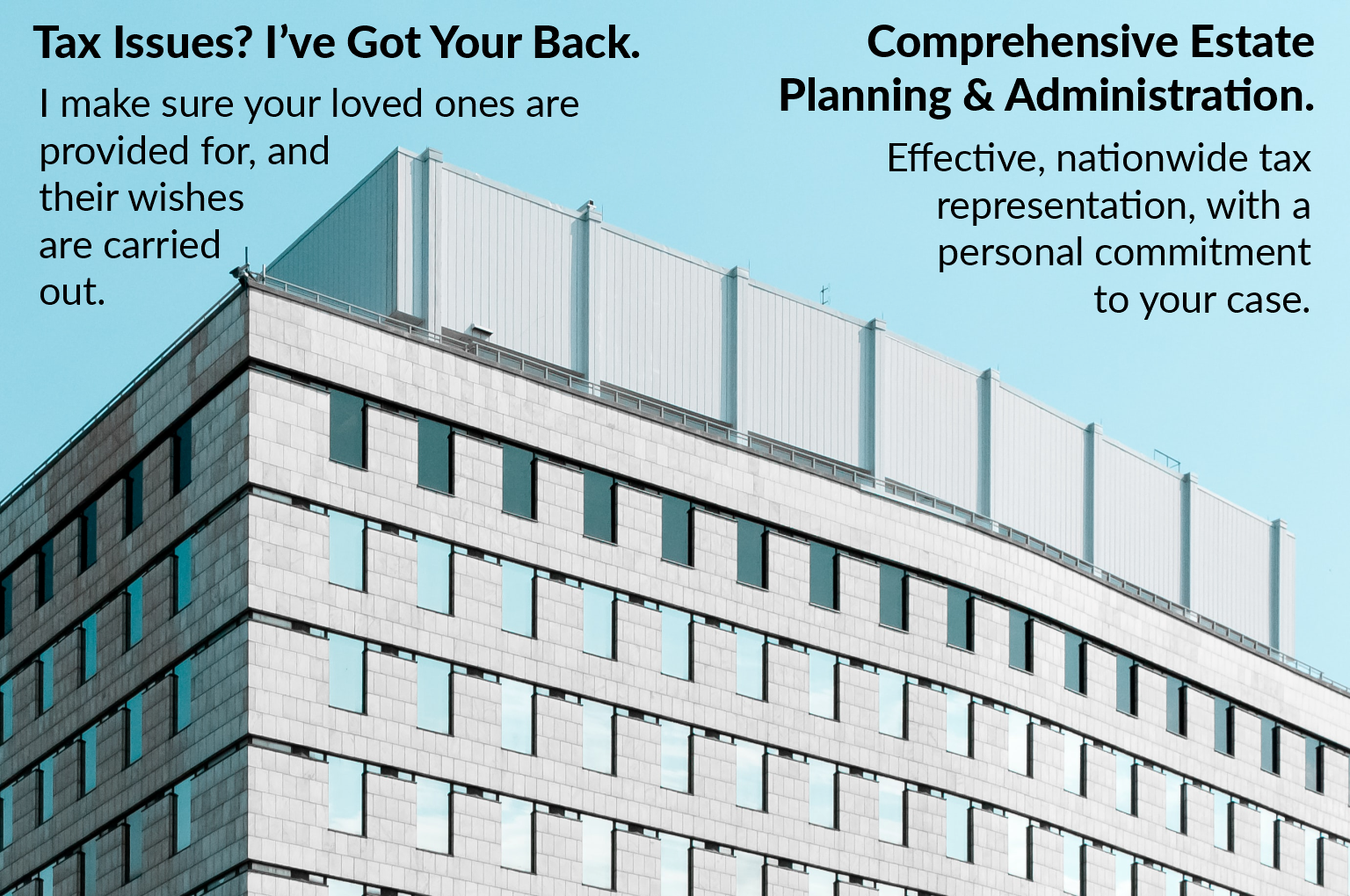 Experienced and dedicated, I provide personalized legal representation in tax controversies nationwide, ensuring your needs come first. With decades of experience in tax law, and a record of leadership in the tax community, I offer strategic solutions tailored to your unique situation. Whether you need individual guidance, or a collaborative approach with accountants, I prioritize clear communication, timely service, and unwavering client advocacy every step of the way.