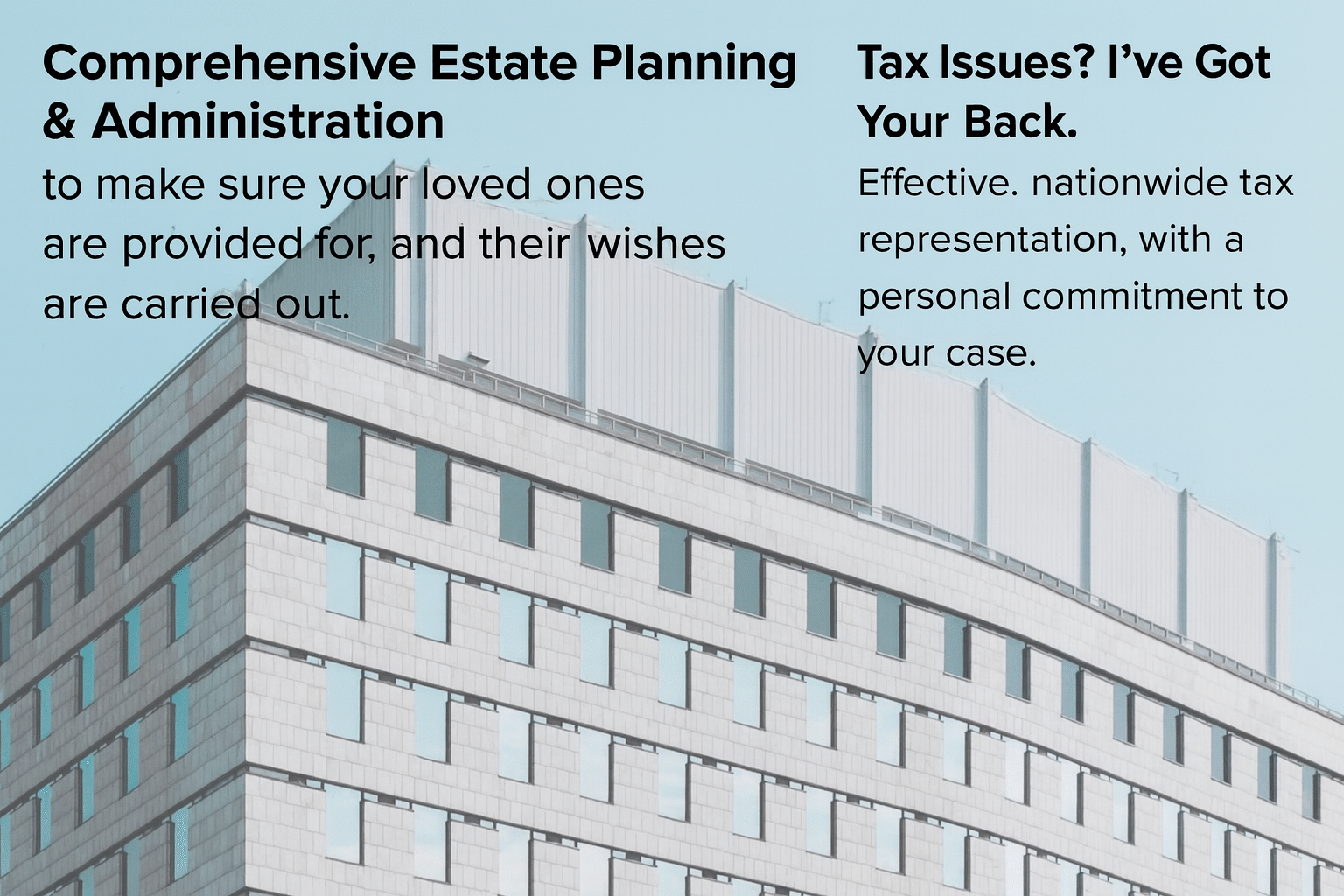 Experienced and dedicated, I provide personalized legal representation in tax controversies nationwide, ensuring your needs come first. With decades of experience in tax law, and a record of leadership in the tax community, I offer strategic solutions tailored to your unique situation. Whether you need individual guidance, or a collaborative approach with accountants, I prioritize clear communication, timely service, and unwavering client advocacy every step of the way.